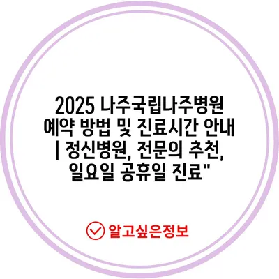 2025 나주국립나주병원 예약 방법 및 진료시간 공지 | 정신병원, 전연락 추천, 일요일 공휴일 진료” 에 대해 자주 묻는 질문 TOP 5