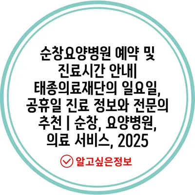 순창요양병원 예약 및 진료시간 공지| 태종의료재단의 일요일, 공휴일 진료 정보와 전연락 추천 | 순창, 요양병원, 의료 서비스, 2025