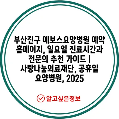 부산진구 에보스요양병원 예약 홈페이지, 일요일 진료시간과 전연락 추천 설명서 | 사랑나눔의료재단, 공휴일 요양병원, 2025 에 대해 자주 묻는 질문 TOP 5