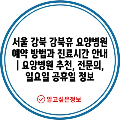 ✅ 강북휴 요양병원의 진료시간과 예약 방법을 자세히 알아보세요.