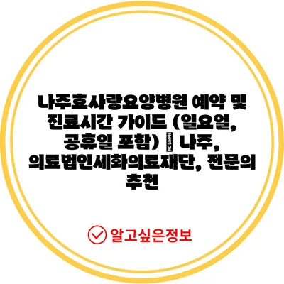 ✅ 나주효사랑요양병원에서의 진료시간과 예약 방법을 알아보세요.