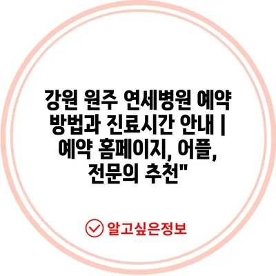 ✅ 강원 원주 연세병원의 예약 방법을 자세히 알아보세요.