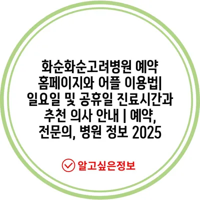 화순화순고려병원 예약 홈페이지와 어플 이용법| 일요일 및 공휴일 진료시간과 추천 의사 공지 | 예약, 전연락, 병원 정보 2025 에 대해 자주 묻는 질문 TOP 5