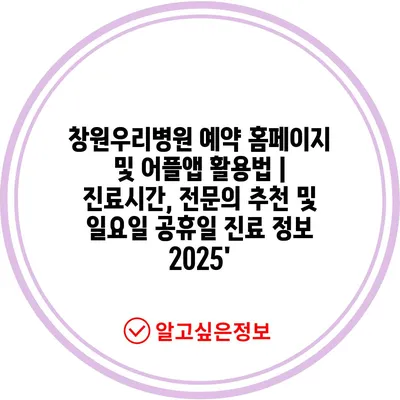 창원우리병원 예약 홈페이지 및 어플앱 활용법 | 진료시간, 전연락 추천 및 일요일 공휴일 진료 정보 2025