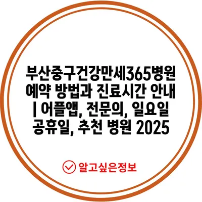 부산중구건강만세365병원 예약 방법과 진료시간 공지 | 어플앱, 전연락, 일요일 공휴일, 추천 병원 2025에 대해 알아보겠습니다.
