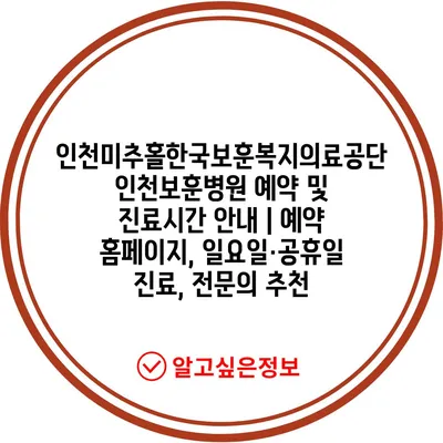인천미추홀한국보훈복지의료공단 인천보훈병원 예약 및 진료시간 안내 | 예약 홈페이지, 일요일·공휴일 진료, 전문의 추천