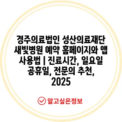 경주의료법인 성산의료재단 새빛병원 예약 홈페이지와 앱 사용법 | 진료시간, 일요일 공휴일, 전연락 추천, 2025에 대해 자주 묻는 질문 TOP 5