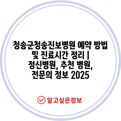 ✅ 청송진보병원 예약 방법을 자세히 알아보세요.