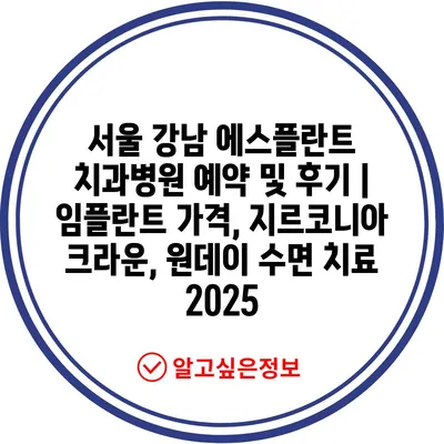 서울 강남 에스플란트 치과병원 예약 및 후기 | 임플란트 가격, 지르코니아 크라운, 원데이 수면 치료 2025 에 대해 자주 묻는 질문 TOP 5