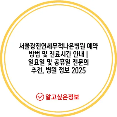 서울광진연세무척나은병원 예약 방법 및 진료시간 공지 | 일요일 및 공휴일 전연락 추천, 병원 정보 2025 에 대해 자주 묻는 질문 TOP 5