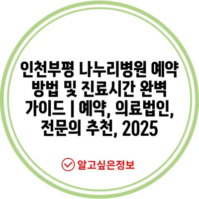 인천부평 나누리병원 예약 방법 및 진료시간 완벽 설명서 | 예약, 의료법인, 전연락 추천, 2025 에 대해 자주 묻는 질문 TOP 5