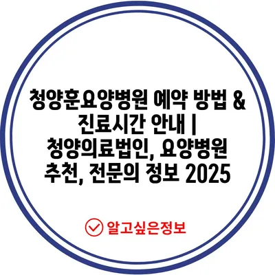 ✅ 청양훈요양병원 예약 방법을 자세히 알아보세요.