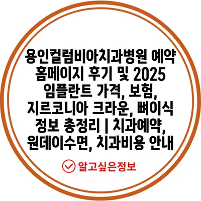 용인컬럼비아치과병원 예약 홈페이지 후기 및 2025 임플란트 가격, 보험, 지르코니아 크라운, 뼈이식 정보 총정리 | 치과예약, 원데이수면, 치과비용 공지 에 대해 자주 묻는 질문 TOP 5