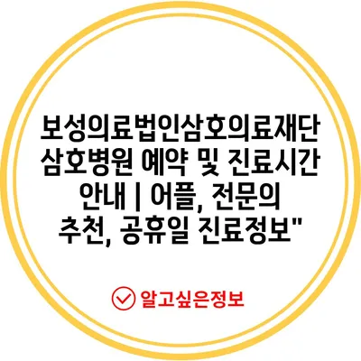 보성의료법인삼호의료재단 삼호병원 예약 및 진료시간 공지 | 어플, 전연락 추천, 공휴일 진료정보