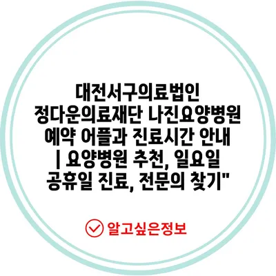 대전서구의료법인 정다운의료재단 나진요양병원 예약 어플과 진료시간 공지 | 요양병원 추천, 일요일 공휴일 진료, 전연락 찾기 에 대해 자주 묻는 질문 TOP 5
