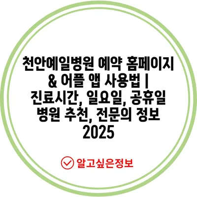 천안예일병원 예약 홈페이지 & 어플 앱 사용법 | 진료시간, 일요일, 공휴일 병원 추천, 전연락 정보 2025에 대해 소개합니다.