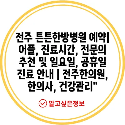 ✅ 전주 튼튼한방병원의 예약 방법과 앱 사용법을 자세히 알아보세요.