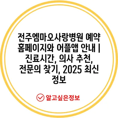 전주엠마오사랑병원 예약 홈페이지와 어플앱 안내 | 진료시간, 의사 추천, 전문의 찾기, 2025 최신 정보