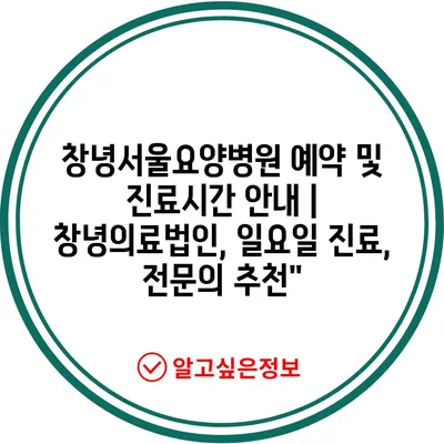 ✅ 창녕서울요양병원의 진료시간과 예약 방법을 쉽게 알아보세요.
