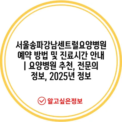 서울송파강남센트럴요양병원 예약 방법 및 진료시간 공지 | 요양병원 추천, 전연락 정보, 2025년 정보