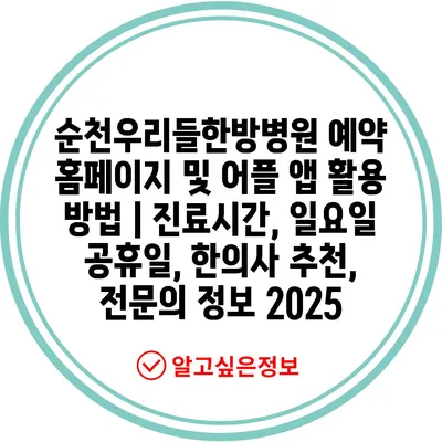 ✅ 순천우리들한방병원 예약 방법과 진료시간을 지금 바로 알아보세요!