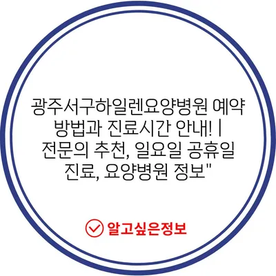 ✅ 광주서구하일렌요양병원의 예약 및 진료시간을 쉽게 알아보세요!