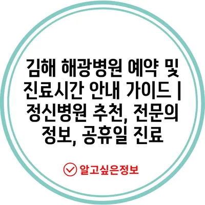 ✅ 김해 해광병원 예약 절차와 진료시간을 간편하게 확인해보세요.