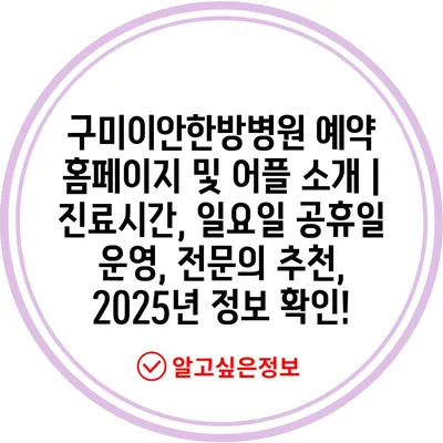 구미이안한방병원 예약 홈페이지 및 어플 소개 | 진료시간, 일요일 공휴일 운영, 전연락 추천, 2025년 정보 확인! 에 대해 자주 묻는 질문 TOP 5