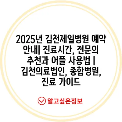 2025년 김천제일병원 예약 공지| 진료시간, 전연락 추천과 어플 사용법 | 김천의료법인, 종합병원, 진료 설명서 에 대해 자주 묻는 질문 TOP 5