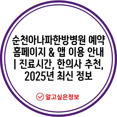 순천아나파한방병원 예약 홈페이지 & 앱 이용 안내 | 진료시간, 한의사 추천, 2025년 최신 정보