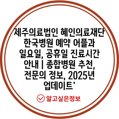 제주의료법인 혜인의료재단 한국병원 예약 어플과 일요일, 공휴일 진료시간 공지 | 종합병원 추천, 전연락 정보, 2025년 업데이트’ 에 대해 자주 묻는 질문 TOP 5