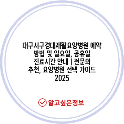 ✅ 대구서구경대재활요양병원의 진료시간과 예약 방법을 자세히 알아보세요.