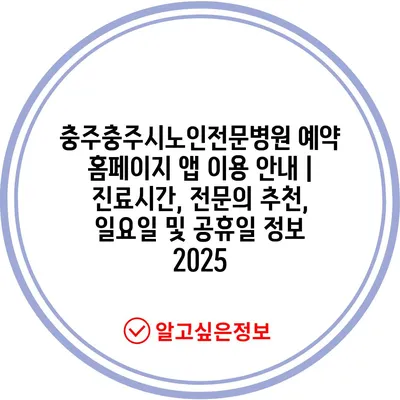 충주충주시노인전문병원 예약 홈페이지 앱 이용 공지 | 진료시간, 전연락 추천, 일요일 및 공휴일 정보 2025