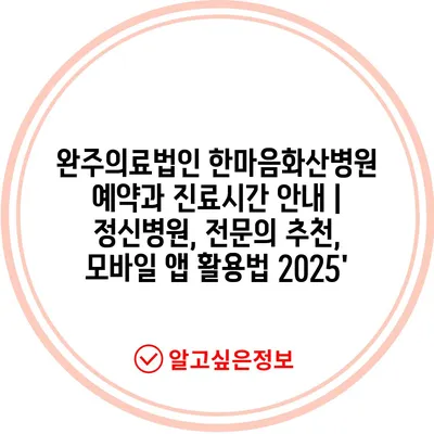 완주의료법인 한마음화산병원 예약과 진료시간 안내 | 정신병원, 전문의 추천, 모바일 앱 활용법 2025′
