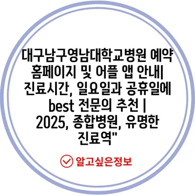 대구남구영남대학교병원 예약 홈페이지 및 어플 앱 안내| 진료시간, 일요일과 공휴일에 best 전문의 추천 | 2025, 종합병원, 유명한 진료역”