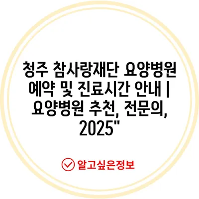 청주 참사랑재단 요양병원 예약 및 진료시간 공지 | 요양병원 추천, 전연락, 2025에 대해 자주 묻는 질문 TOP 5