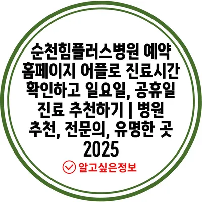 ✅ 순천힘플러스병원의 진료시간과 예약 방식을 쉽고 빠르게 확인해 보세요.