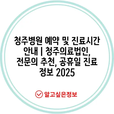 청주병원 예약 및 진료시간 공지 | 청주의료법인, 전연락 추천, 공휴일 진료 정보 2025