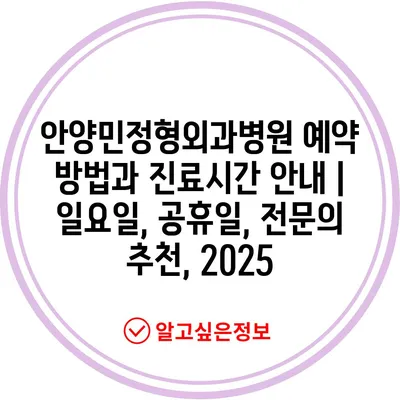 ✅ 안양민정형외과병원 예약 방법을 자세히 알아보세요.