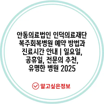 안동의료법인 인덕의료재단 복주회복병원 예약 방법과 진료시간 공지 | 일요일, 공휴일, 전연락 추천, 유명한 병원 2025