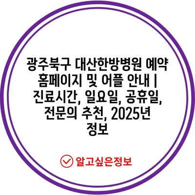 광주북구 대산한방병원 예약 홈페이지 및 어플 공지 | 진료시간, 일요일, 공휴일, 전연락 추천, 2025년 정보