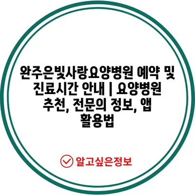 완주은빛사랑요양병원 예약 및 진료시간 공지 | 요양병원 추천, 전연락 정보, 앱 활용법 에 대해 자주 묻는 질문 TOP 5