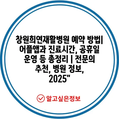 창원희연재활병원 예약 방법| 어플앱과 진료시간, 공휴일 운영 등 총정리 | 전연락 추천, 병원 정보, 2025