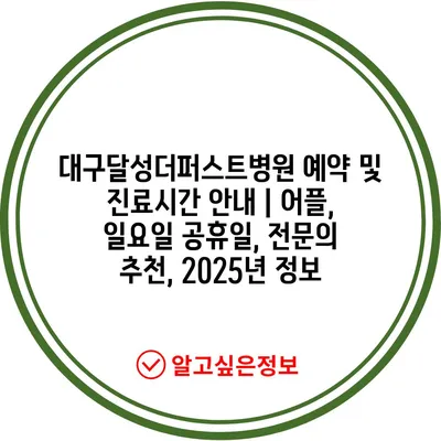 대구달성더퍼스트병원 예약 및 진료시간 공지 | 어플, 일요일 공휴일, 전연락 추천, 2025년 정보 에 대해 자주 묻는 질문 TOP 5