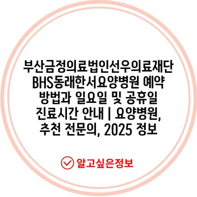 부산금정의료법인선우의료재단 BHS동래한서요양병원 예약 방법과 일요일 및 공휴일 진료시간 공지 | 요양병원, 추천 전연락, 2025 정보 에 대해 자주 묻는 질문 TOP 5