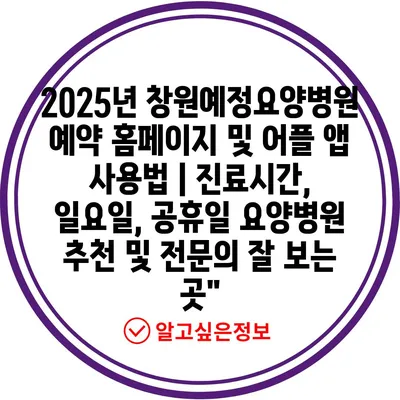 2025년 창원예정요양병원 예약 홈페이지 및 어플 앱 사용법 | 진료시간, 일요일, 공휴일 요양병원 추천 및 전연락 잘 보는 곳 에 대해 자주 묻는 질문 TOP 5