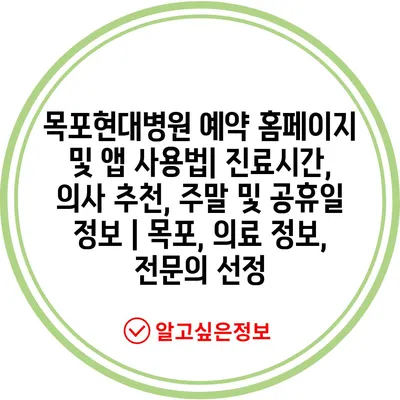 ✅ 목포현대병원 예약 방법과 진료시간을 지금 바로 알아보세요.