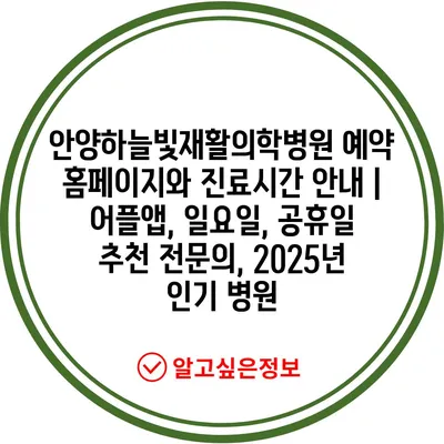 안양하늘빛재활의학병원 예약 홈페이지와 진료시간 공지 | 어플앱, 일요일, 공휴일 추천 전연락, 2025년 인기 병원 에 대해 자주 묻는 질문 TOP 5