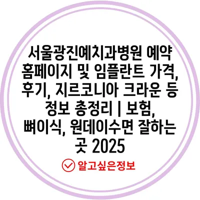 서울광진예치과병원 예약 홈페이지 및 임플란트 가격, 후기, 지르코니아 크라운 등 정보 총정리 | 보험, 뼈이식, 원데이수면 잘하는 곳 2025