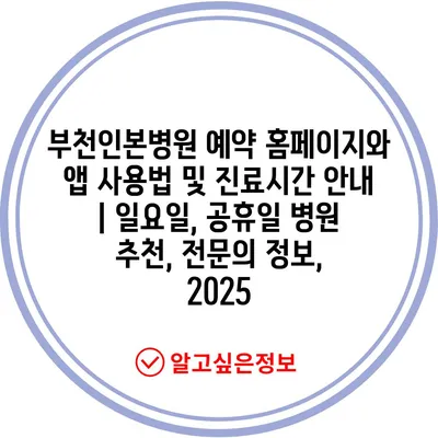 부천인본병원 예약 홈페이지와 앱 사용법 및 진료시간 공지 | 일요일, 공휴일 병원 추천, 전연락 정보, 2025 에 대해 자주 묻는 질문 TOP 5